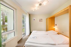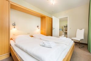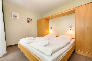 Ein Schlafzimmer wahlweise mit Doppelbett oder zwei Einzelbetten und Schrank