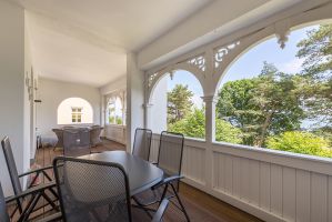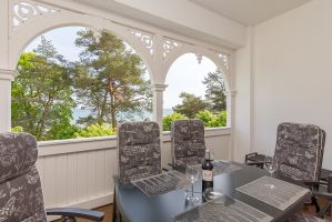 DVD-Player, ein großer Balkon mit Meerblick