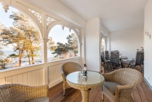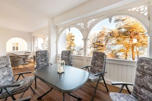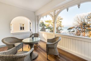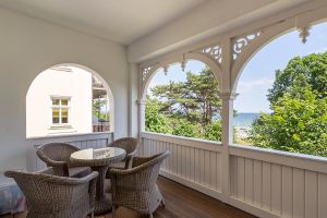 Großer geräumiger Balkon zur Nordseite mit direktem Blick auf den Strand.