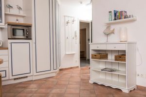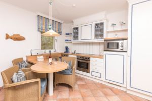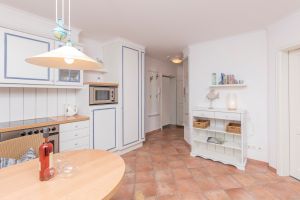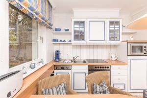 Die Küche ist mit geräumiger Küchenzeile, Kühlschrank mit Gefrierfach, Cerankochfeld, Mikrowelle, Toaster, Wasserkocher, Kaffeemaschine, Geschirrspüler und reichlich Küchen-Utensilien ausgestattet