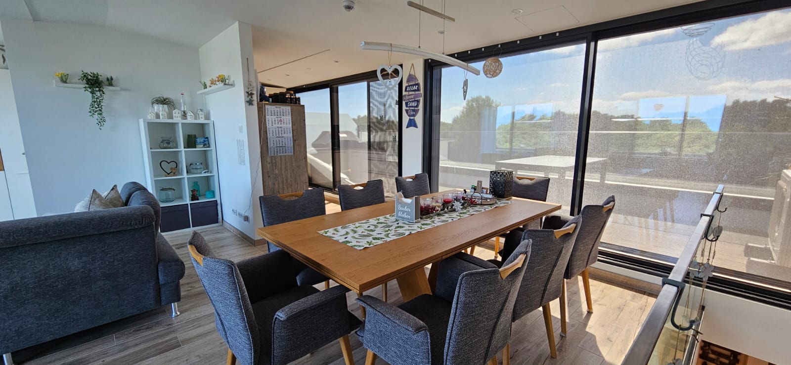 Im Wohnzimmer einer modernen Schlafcouch , Essecke für 8 Personen,