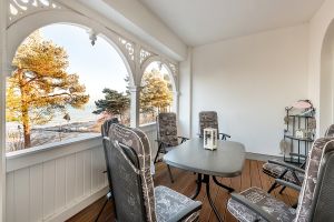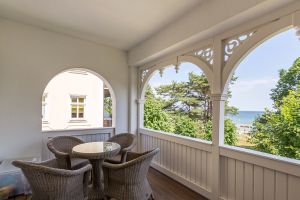 Großer geräumiger Balkon zur Nordseite mit direktem Blick auf den Strand.
