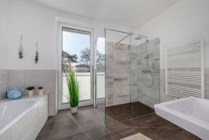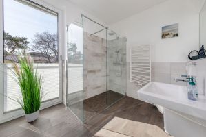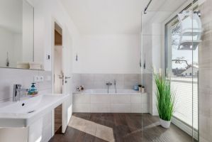 Bad mit Dusche, Waschbecken, WC, Föhn